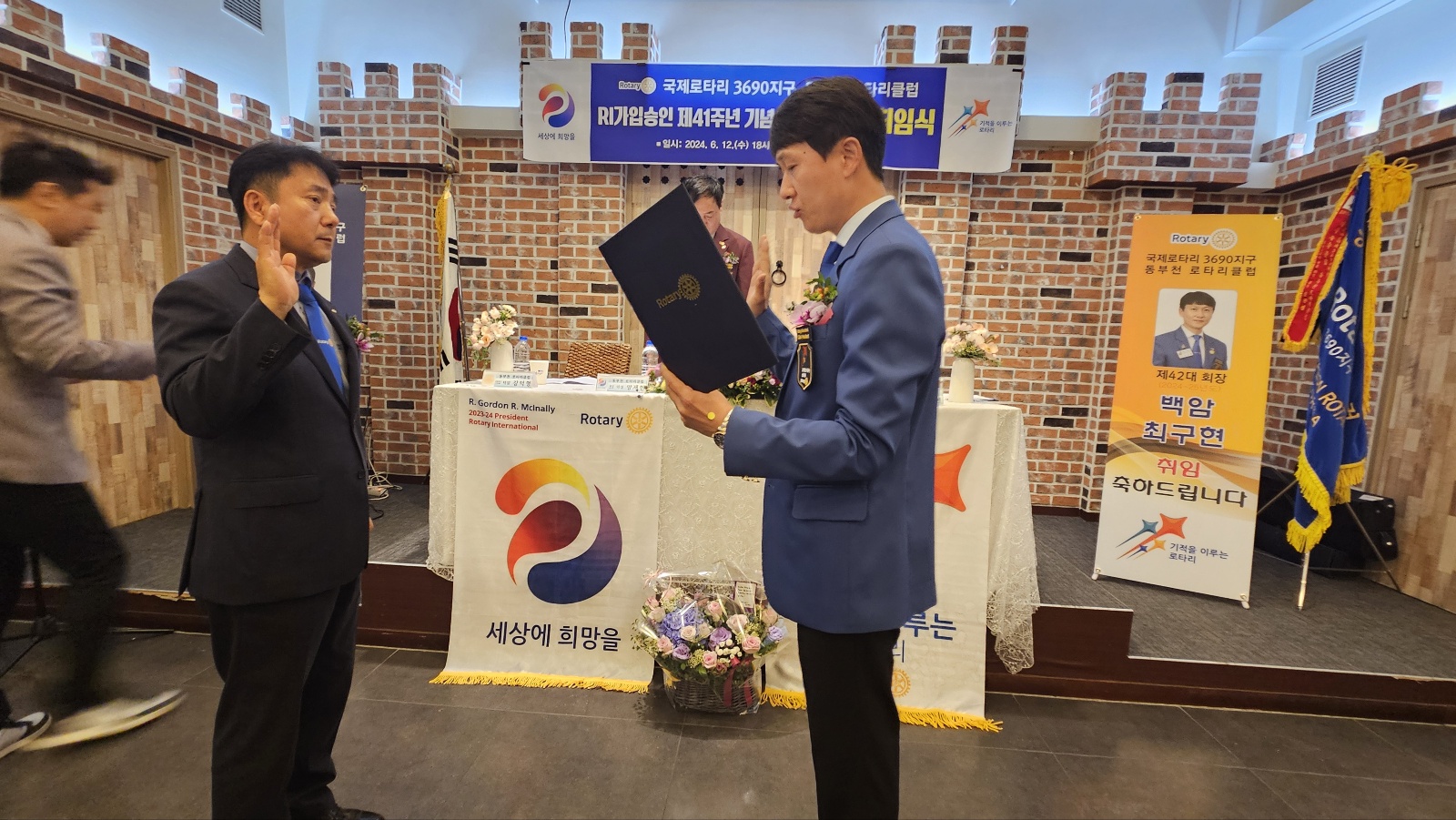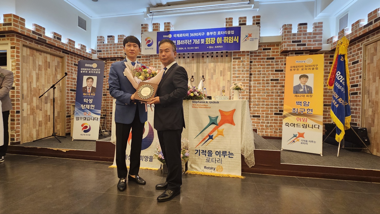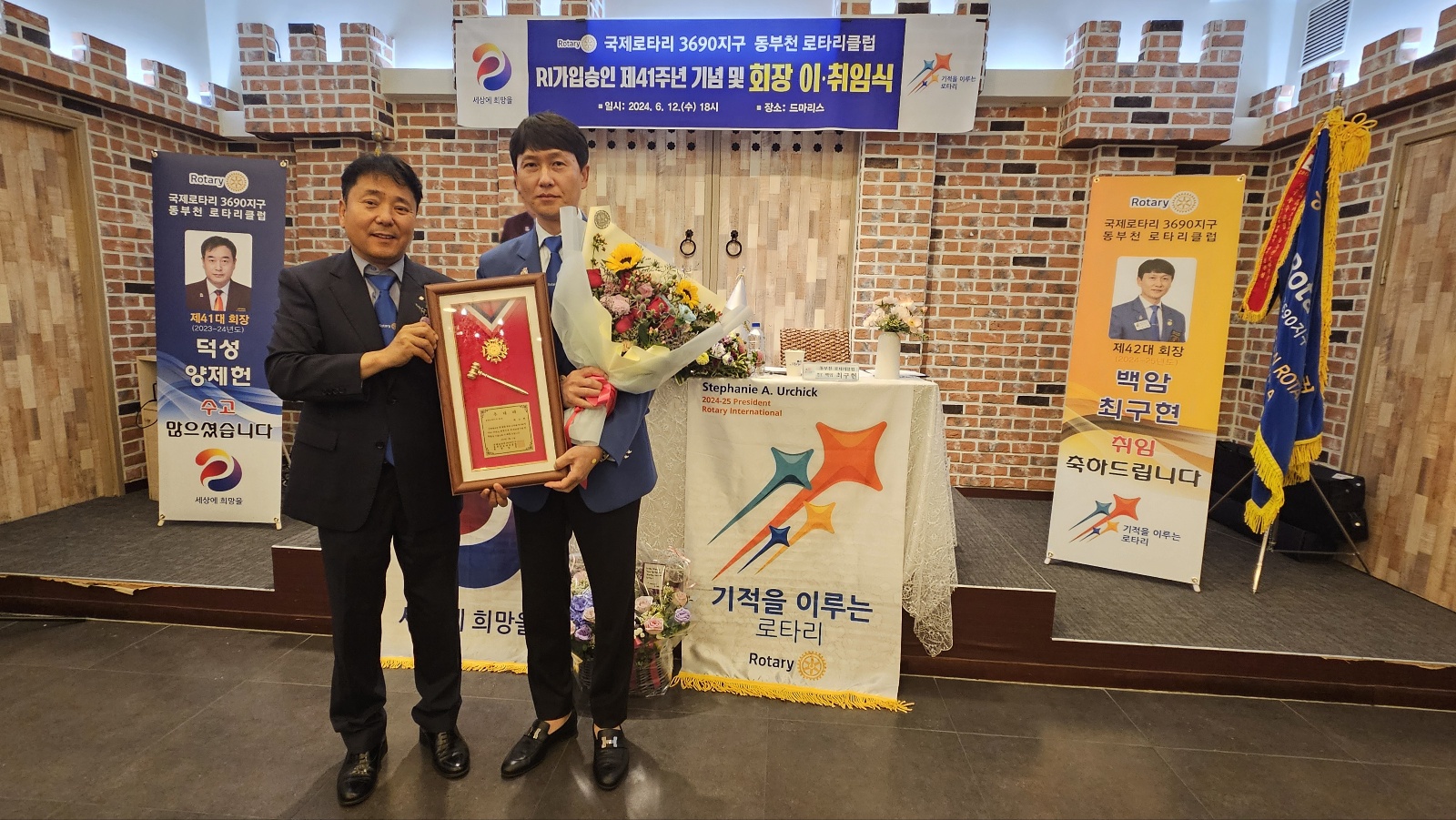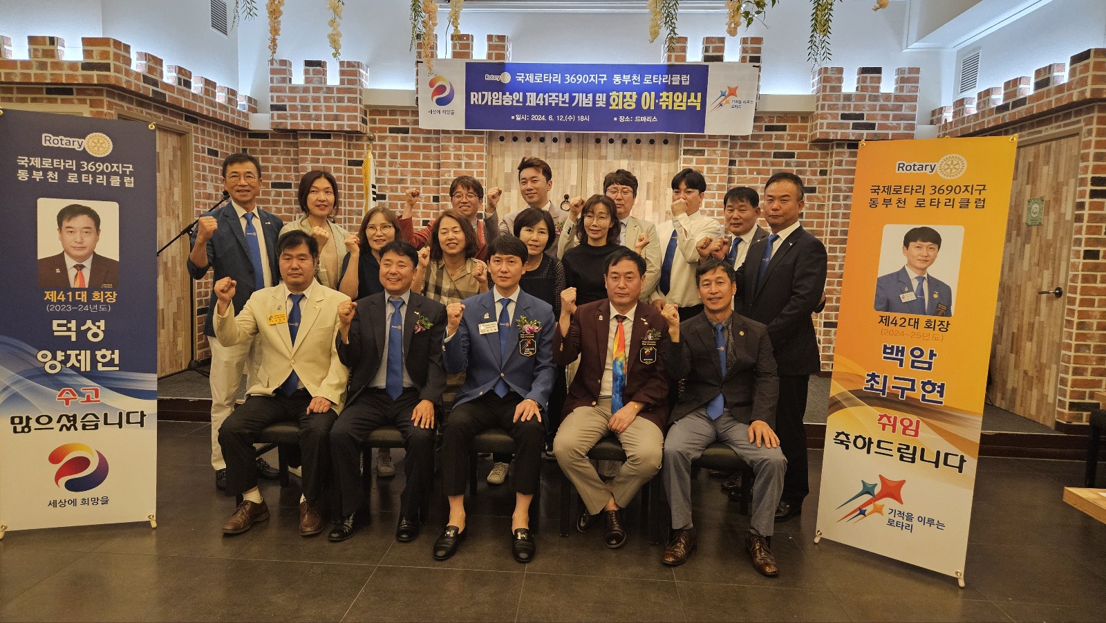 -내용: 동부천 로타리클럽(회장 백암 최구현) 41대-42대 회장 이취임식을 맞이하여 회원, 배우자님들을 모시고 자체 행사로 진행하였다